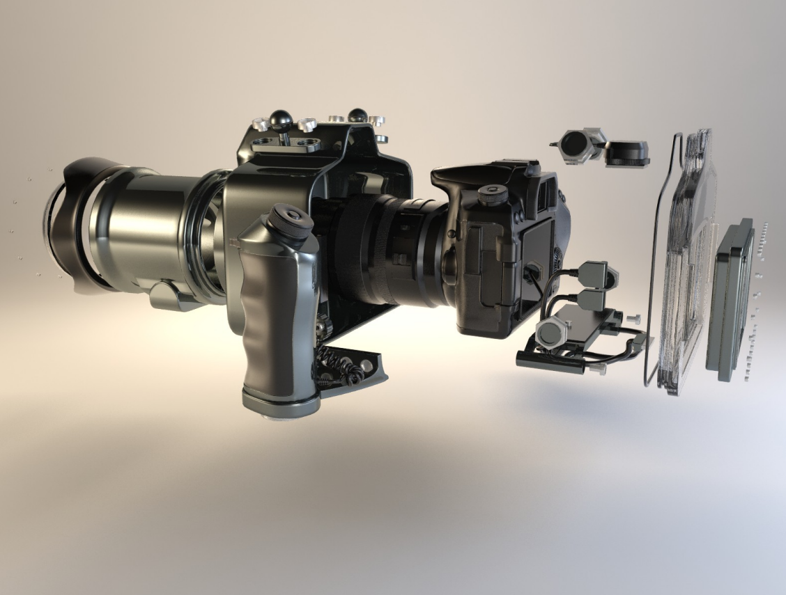 Ontwerp van een universele onderwaterbehuizing voor spiegelreflexcamera’s.