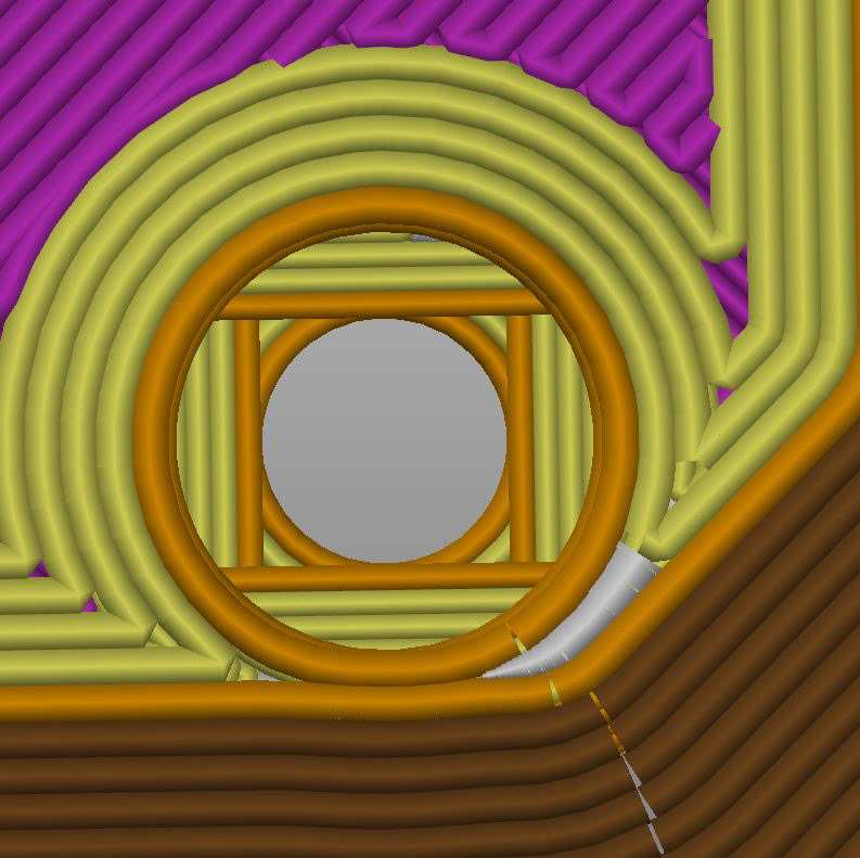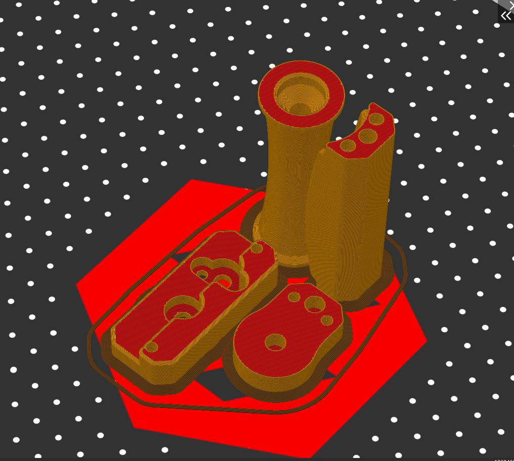 Enkele schroefgaten bevatten een overhang van 90 graden, maar zijn zo vormgegeven dat ze alsnog zonder support geprint kunnen worden.