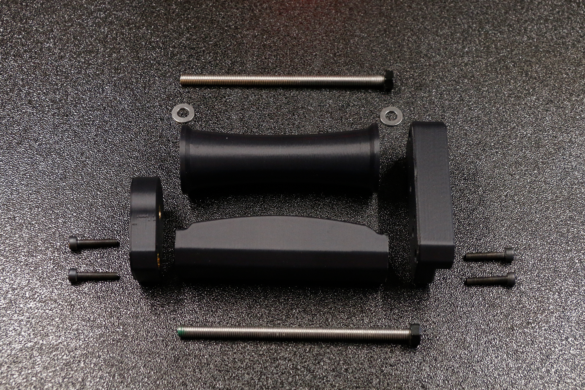 een van deze draadeinden functioneert tevens als as en loopt door beide 625-2RS lagers, die aan weerszijden van de roller in een press-fit gat zijn gemonteerd. Om speling te voorkomen is aan beide kanten een 1 mm shim ring geplaatst.